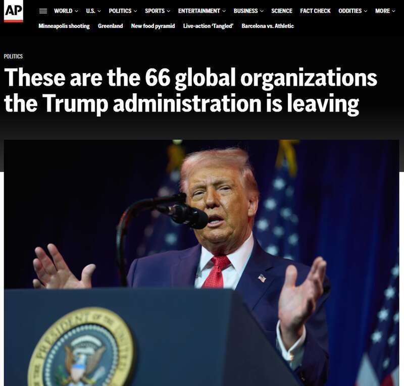 美联社、《今日美国》报等媒体注意到升宏网,本次美国退出的国际组织涵盖聚焦气候、劳工等议题的各类机构、委员会与咨询小组。特朗普政府将它们归类为迎合多元主义及“觉醒”倡议的组织。